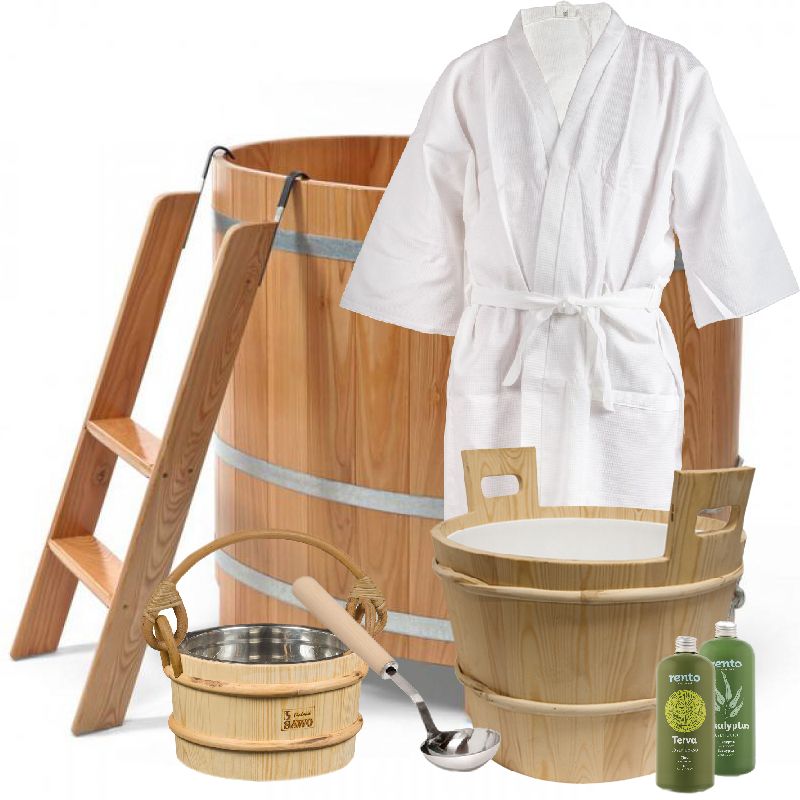 Традиційні віники з берези або дуба забезпечують масажний ефект і покращують кровообіг. Альтернативи – евкаліптові чи хвойні віники, які мають заспокійливі та антисептичні властивості. - Ковші та відра