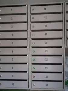 Загальна дверцята/скло: Деякі моделі мають загальну захисну дверцята або скло, що захищає індивідуальні осередки від безпосереднього впливу вологи та бруду. Це зручно для поштарів і додатковий захист для кореспонденції.